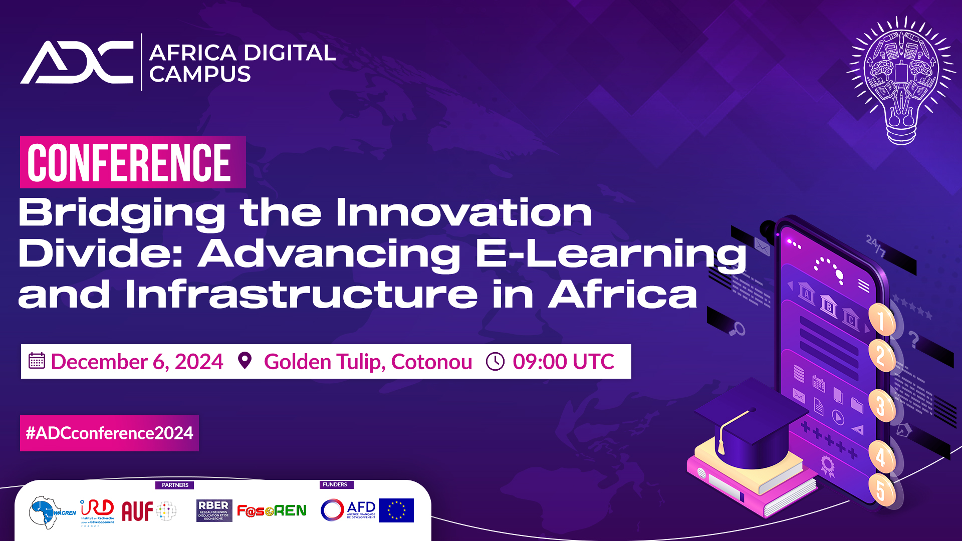 The Africa Digital Campus partners will hold a Conference to close the project’s pilot phase. The Conference will be held on December 6, 2024, at the Golden Tulip, Cotonou.